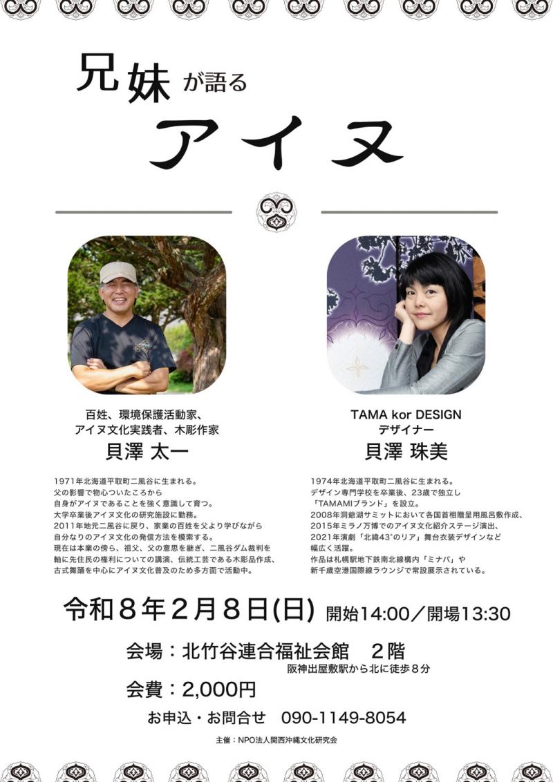 今回は北海道二風谷より、アイヌ文化実践者の貝澤太一氏を迎え