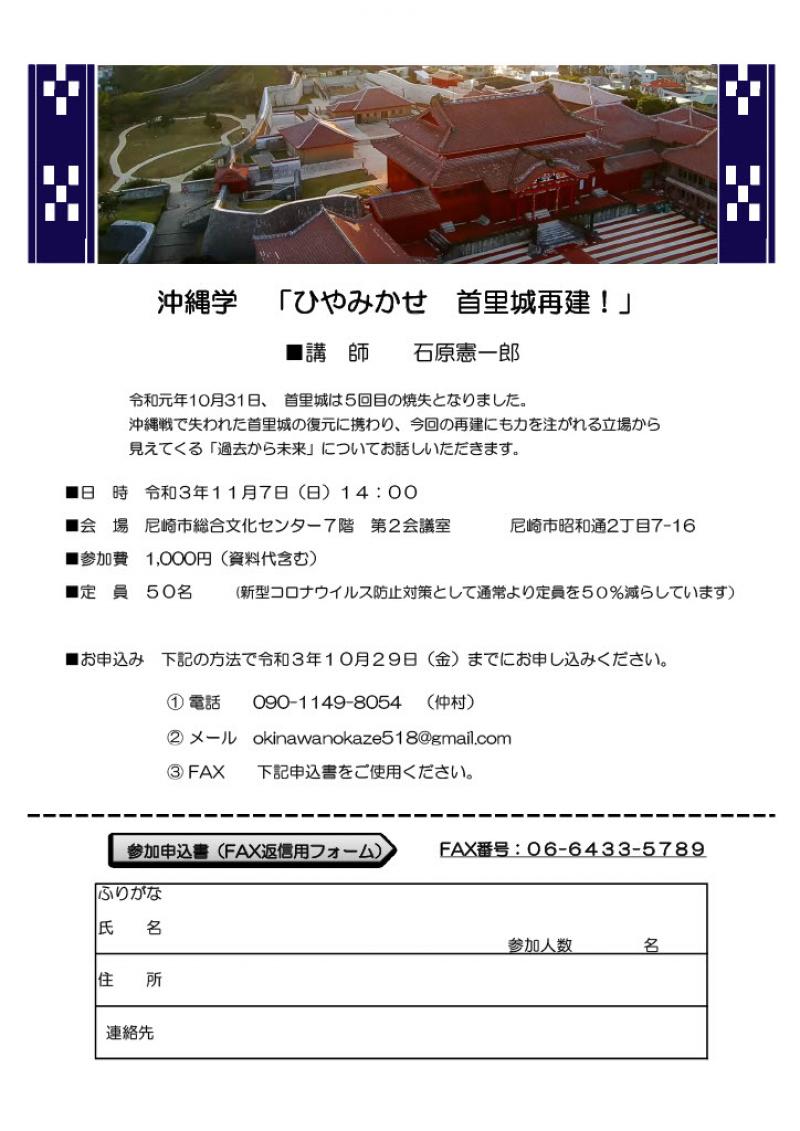沖縄戦で失われた30年前の首里城復元に携わり、今回の再建にも力を注がれる石原憲一郎氏の立場から見えてくる「過去から未来」についてお話しいただきます。